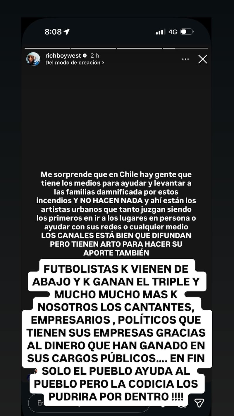 Sin piedad se manifestó el cantante urbano Pablo Chill-E en contra de estrellas del fútbol que, a su juicio, no se han puesto con los damnificados de los incendios.