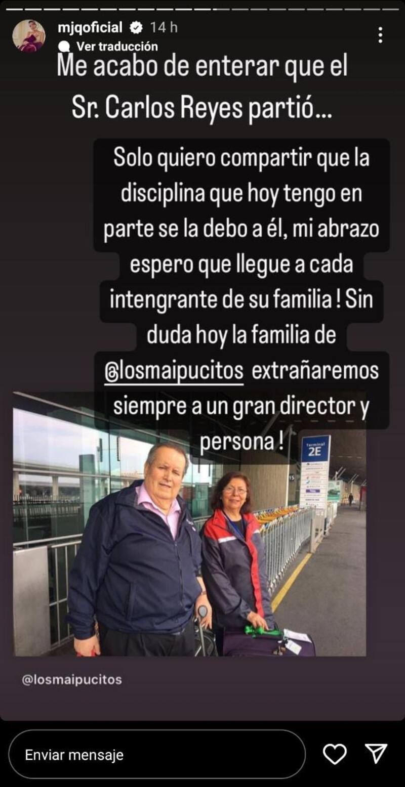 “Me acabo de enterar que el Sr. Carlos Reyes partió… Solo quiero compartir que la disciplina que hoy tengo se la debo a él, mi abrazo espero que llegue a cada integrante de su familia! Sin duda hoy la familia de @losmaipucitos extrañaremos siempre a un gran director y persona!”, expresó compartiendo una foto de su ser querido ante su partida.