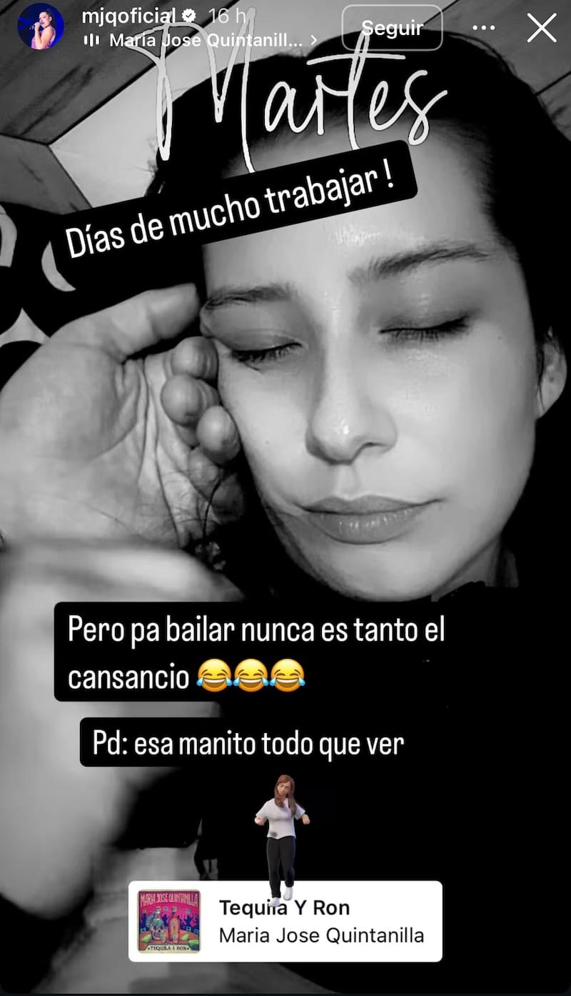 “Días de mucho trabajar. Pero para bailar nunca es tanto cansancio. PD: esa manito todo que ver”, escribió la otrora integrante del Mucho Gusto.