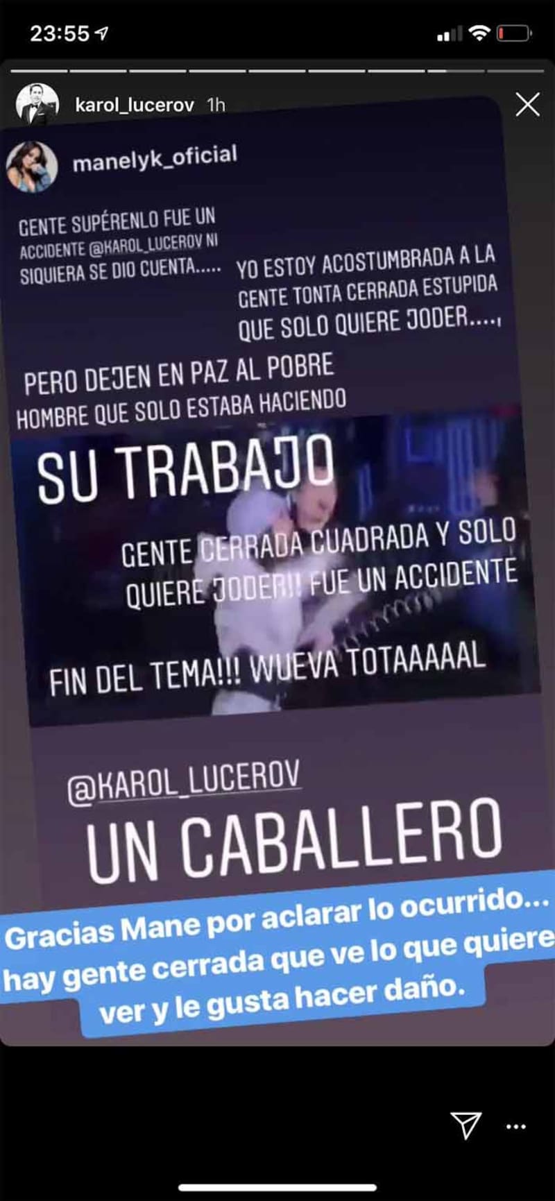 "Gente cerrada, cuadrada y solo quieren joder, fue un accidente. Fin de tema!!! @karol_lucero un caballero", cerró su posteo.