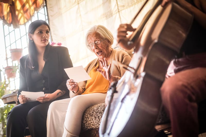 “¿Estás cansadita?”, le pregunta su hijo Juan Cristóbal Meza, compositor y director de Ciudad, la sonora puesta escena sobre distintos puntos icónicos de Santiago en que su madre, con 96 años, hará de narradora en el Nescafé de las Artes (compra tu entrada AQUÍ), el martes 29 de octubre a las 20:00. “Estoy bien, estoy bien”, le contesta ella, aunque tiene algo de sed, pero sigue presta a seguir la conversación con La Cuarta.