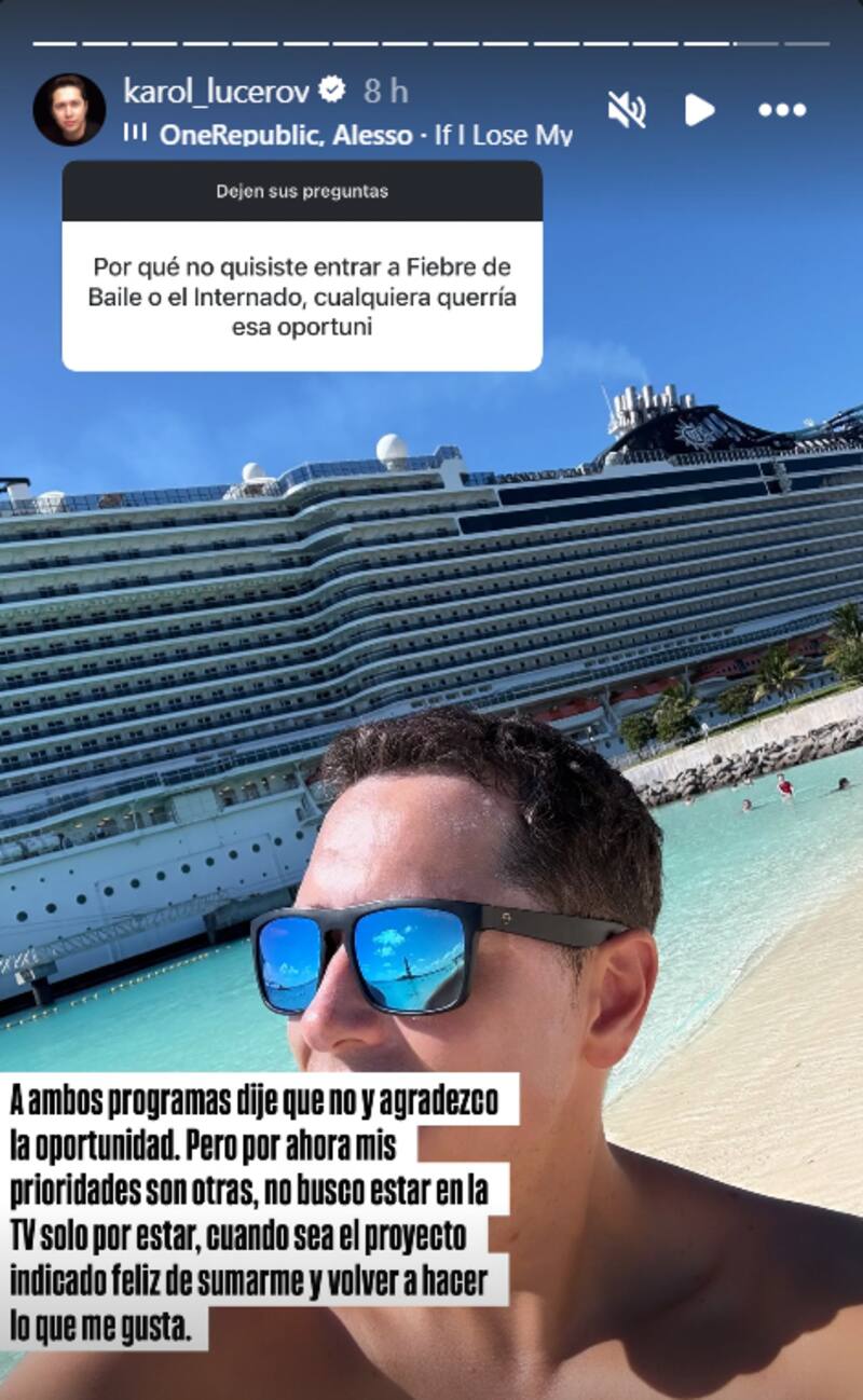 Karol, quien se encuentra disfrutando de un crucero por el Caribe, fue consultado sobre el tema a través de redes sociales.