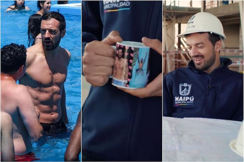 “¿Es verdad que tu equipo te dijo ‘deja de sacarte fotos sin poleras’?”, le consultó el humorista, mientras que el alcalde dijo entre risas: “Está prohibido”.