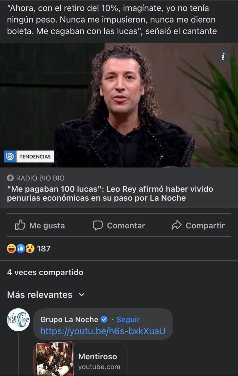 Las palabras de Leo Rey fueron replicadas en varios medios. Y allí se generó la posibilidad de una respuesta. Fue en una publicación en sitio de radio Bio Bío en Facebook, donde también reprodujeron las acusaciones del cantante. Allí, el grupo respondió de una forma muy particular.