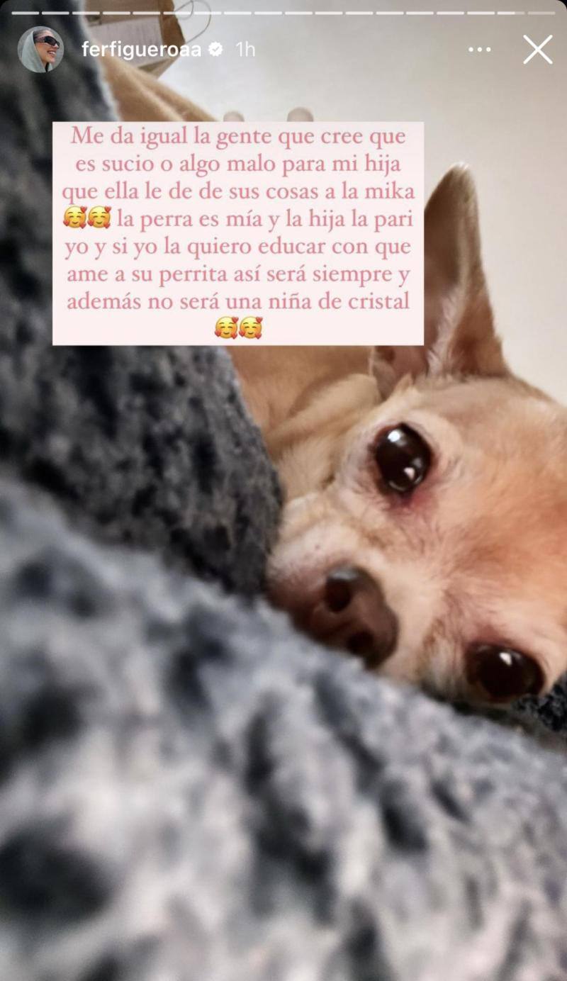 Fer no dejó pasar el comentario que recibió y respondió con todo a la dura crítica que recibió. La modelo subió una historia con una postal de la mascota y un contundente mensaje para sus seguidores.