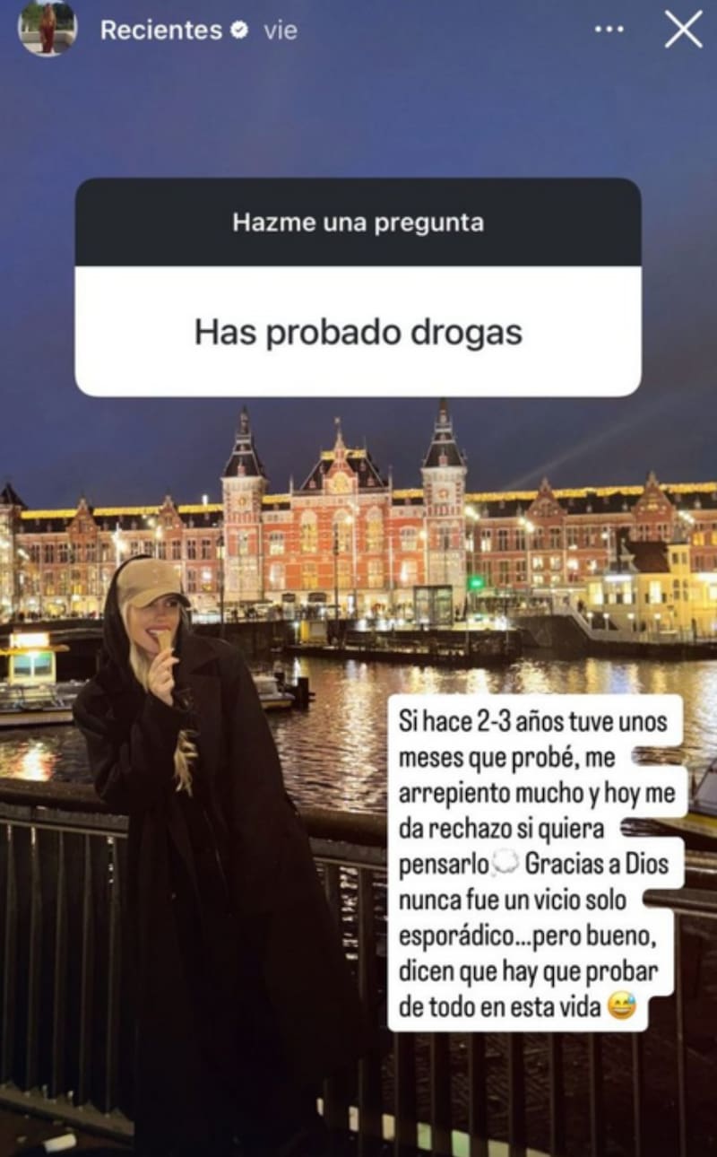 Uno de los adeptos a internet puso su duda sobre la mesa y la mujer la expuso: “¿Has probado drogas?”, para luego ella contestarla.