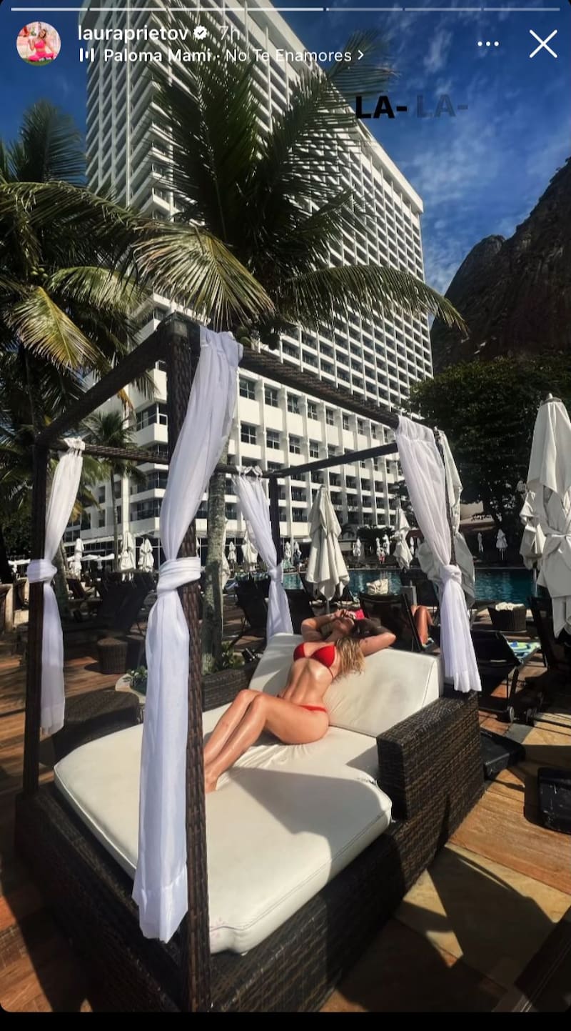 Y ahora que ya están en Santiago, Laura aprovechó de subir una foto a través de sus historias de Instagram, luciendo un coqueto bikini rojo con una canción de Paloma Mami de fondo, “la que puede, puede, y yo puedo”, se escucha.