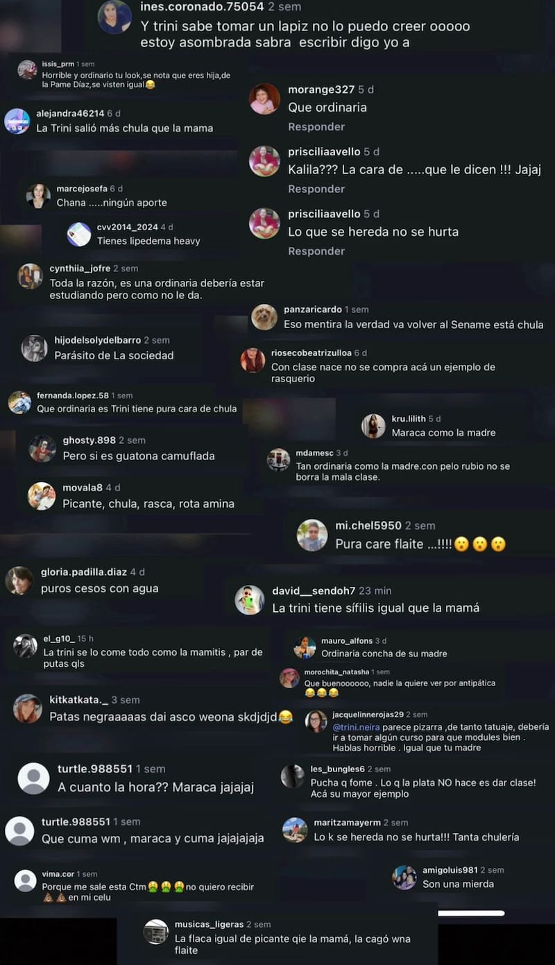 Siguen las repercusiones sobre el mediático conflicto que involucra a Trini Neira, hija de Pamela Díaz, con María Teresa Matus, la cual también le salpicó a Gissella Gallardo.