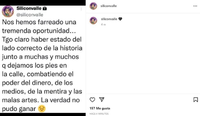“Nos hemos farreado una tremenda oportunidad… Tengo claro haber estado en el lado correcto de la historia junto a muchas y muchos que dejamos los pies en la calle, combatiendo el poder del dinero, de los medios, de la mentira y las malas artes. La verdad no pudo ganar”, señaló generando diversas reacciones.