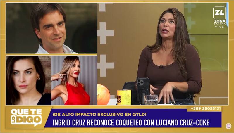 “Ella (Cruz) saca una pelea que tuve hace más de 30 años”, relató la panelista de Tal cual (TV+). “Te voy a contar: yo pololeaba con Luciano (Cruz-Coke) y ella se lo tiraba, se lo agarraba y trabajaba conmigo, era compañera mía de elenco”, y agregó que “menos mal después se fue con (Jorge) Zabaleta”.
