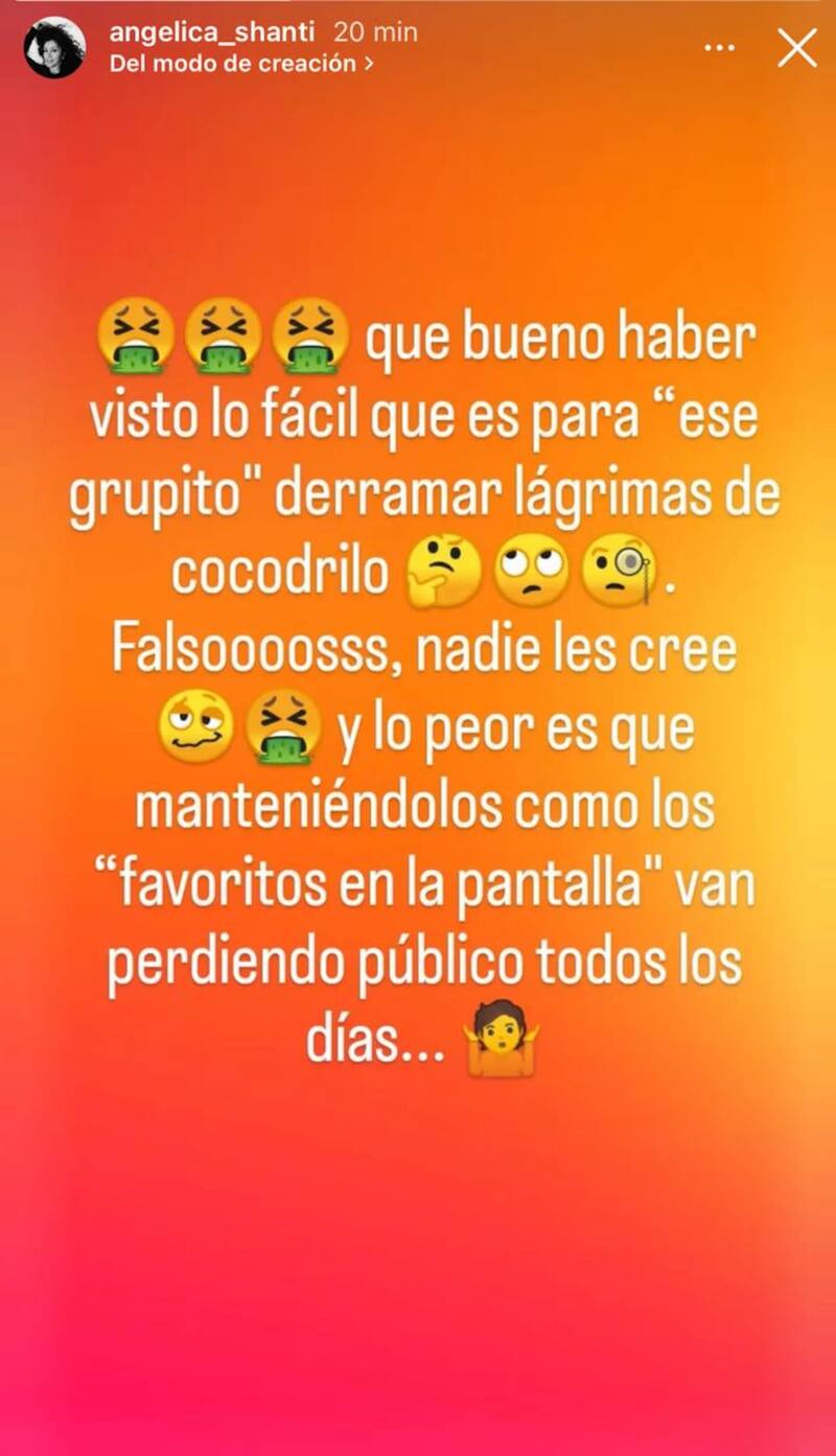 “Qué bueno haber visto lo fácil que es para ‘ese grupito’ derramar lágrimas de cocodrilo”, escribió en sus stories de Instagram.