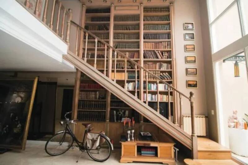 Dentro de los atractivos del inmueble, está una imponente biblioteca, que va del piso al techo doble altura que acompaña la escalera. Además, tiene una amplia cocina, comedor aparte y un luminoso living con vista al jardín, donde también hay piscina.