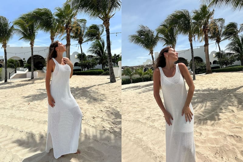 Desde uno de los lujosos hoteles que es embajadora, publicó en Instagram una serie de fotos con dos diferentes looks, pero más allá del paradisiaco paisaje y de lo bien que luce, sus seguidores notaron una tristeza inusual en su mirada.