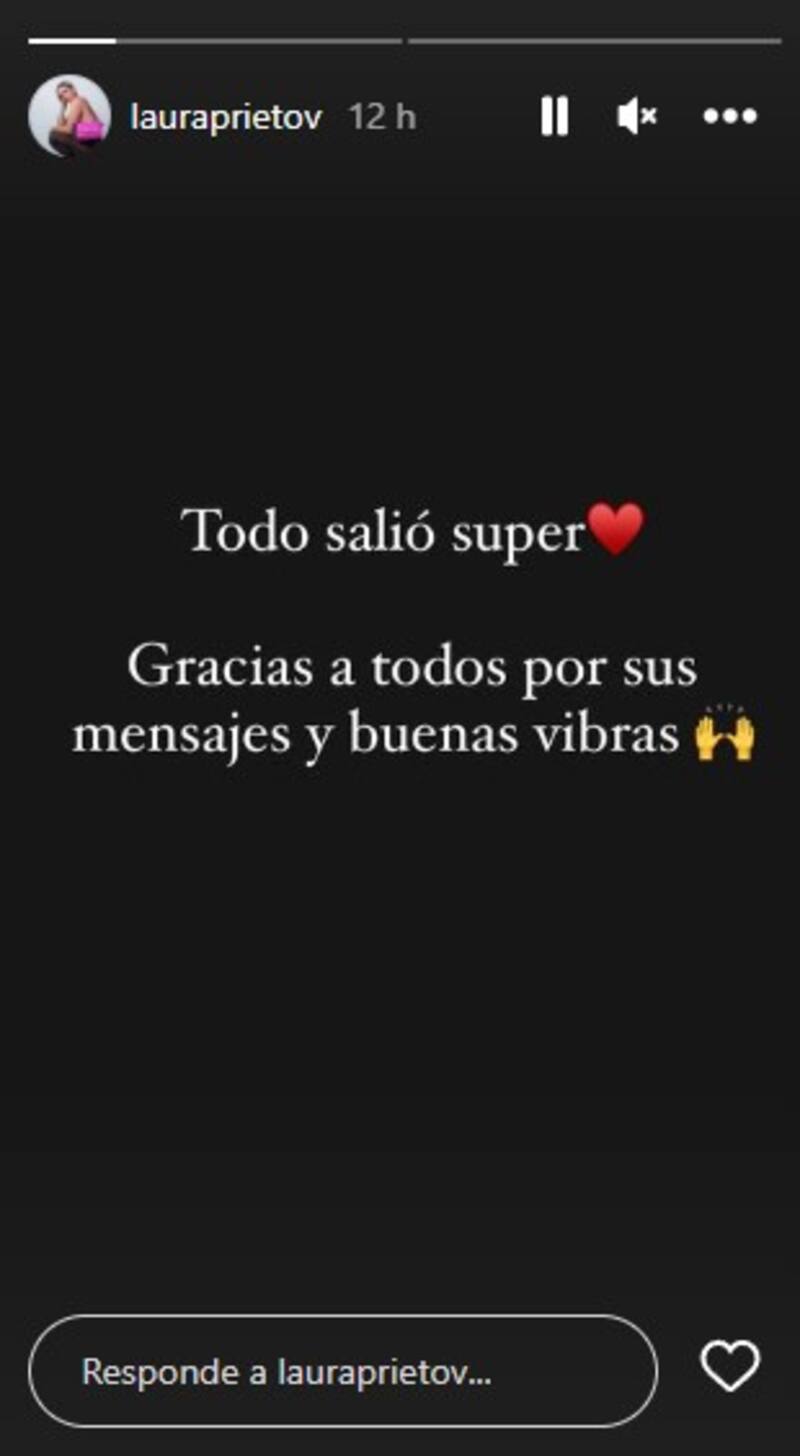 “Todo salió super. Gracias a todos por sus mensajes y buenas vibras”, señaló en la red social, agradeciendo el cariño de sus seguidores.