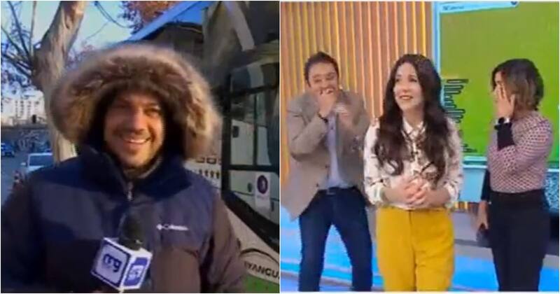 El periodista estaba en la calle conversando sobre el frío que hacía en la capital, cuando se acercó a un transeúnte que iba rumbo a su trabajo cuando al final quiso enviar un saludo a su familia.