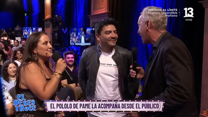 Ante esto, el público comenzó a pedir “el beso” entre Pamela y su pareja. “Leonel, este es el minuto de sellar este romance”, expresó el animador. “Con mi poniente oficial”, agregó la comediante.