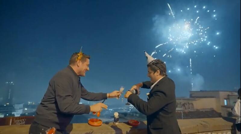 El actor y el conductor subieron hasta la colina más alta de la ciudad europea para poder disfrutar de los fuegos artificiales a la media noche. Llegaron con una maleta llena de confeti, con champaña y gorros.