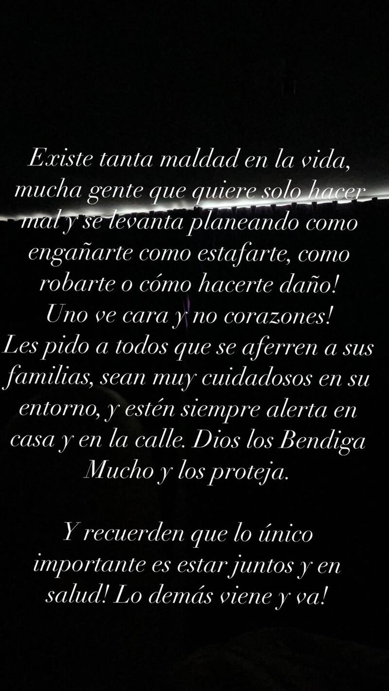 "Somos muy vulnerables en este mundo", lamentó la modelo a través de sus redes sociales .