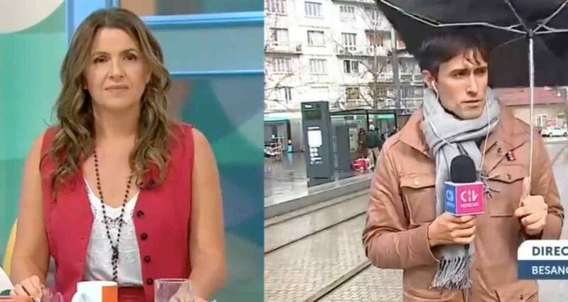 “Hay mucho viento acá”, atinó a decir mientras JC Rodríguez y Monserrat Álvarez no aguantaron la risa desde el estudio. “Te vas a tener que mojar, no más”, bromeó la periodista al ver la situación.