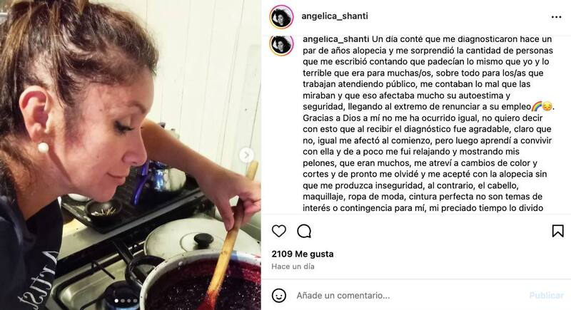 Y sobre la misma, agregó: “me atreví a cambios de color y cortes, y de pronto me olvidé y me acepté con la alopecia sin que me produzca inseguridad”.