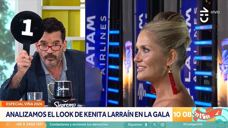 Posteriormente, Julio César Rodríguez le dio el paso a Vasco Moulian para que opinara del atuendo de Kenita y le entregara una nota.