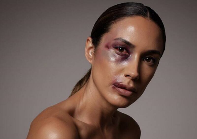 En la publicación de Instagram, se ve a modelo con la mitad de su cara golpeada, con moretones y rasgos de sangre, efecto logrado con maquillaje.