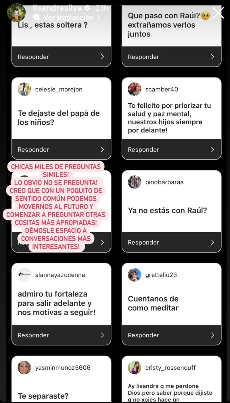 “¿Qué pasó con Raúl? Extraño verlos juntos”, “¿Ya no estás con Raúl?” y “¿te separaste?”, fueron sólo algunas de las interrogantes que le dejaron en la web.