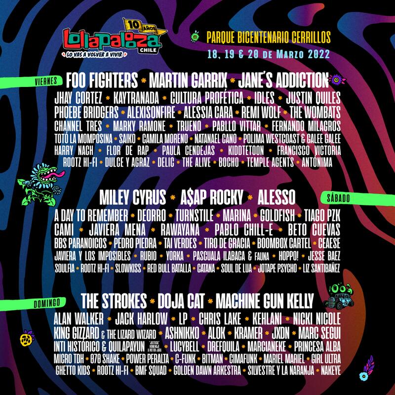 La edición 2022 de Lollapalooza Chile está agendada para el 18, 19 y 20 de marzo en el Parque Bicentenario de Cerrillos.