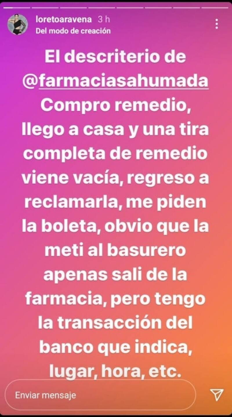 "Vaya a buscar a la basura": Loreto Aravena funa a farmacia tras vivir incómodo momento