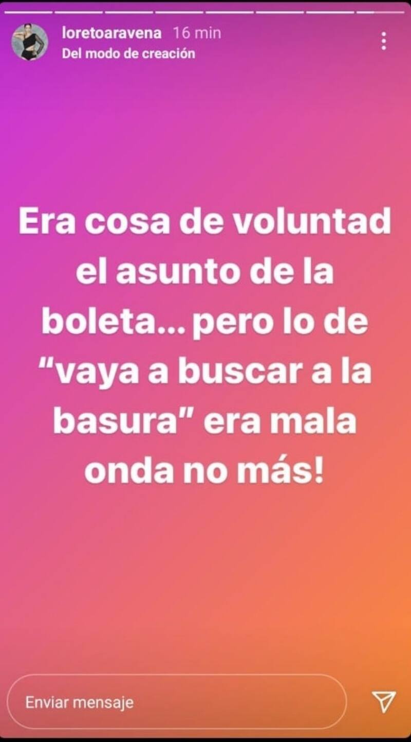 En una segunda historia, Aravena reprodujo el diálogo que sostuvo con la vendedora y se quejó de su actitud: