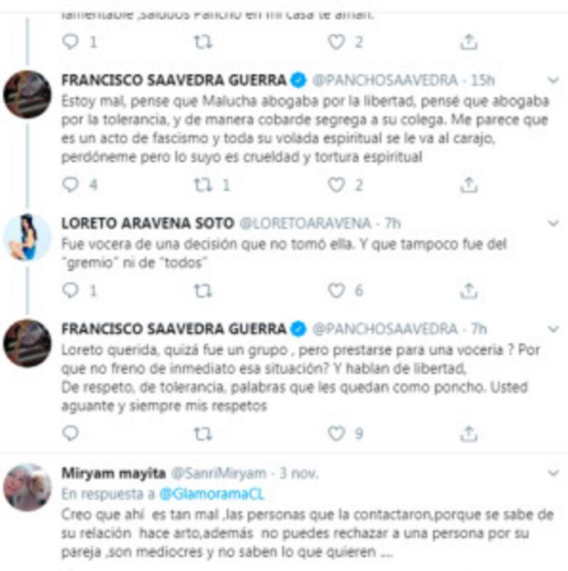 Pero no es todo, dicha nota fue comentada por Pancho Saavedra, quien dedicó unas dolidas palabras a Malucha Pinto, las que fueron respondidas por Loreto Aravena.