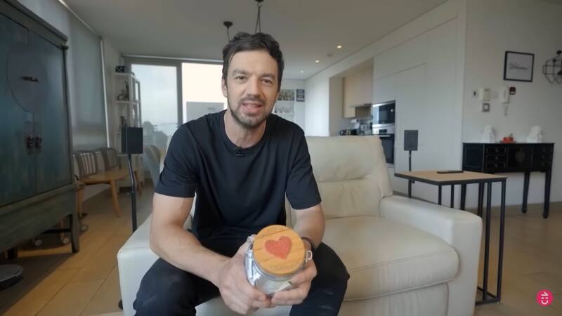 Luego, Tomás Vodanovic mostró un especial regalo que recibió de parte de sus alumnos: un frasco transparente con varios papeles en su interior.