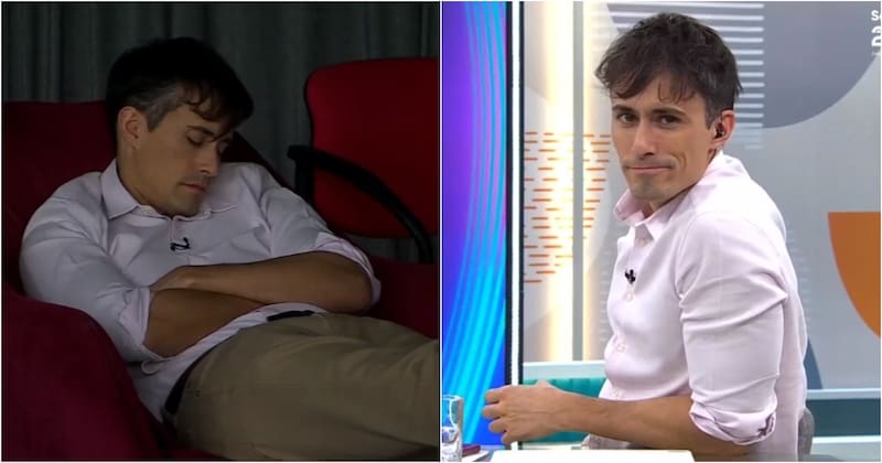 En el matinal Contigo en la mañana mostraron las imágenes del periodista disfrutando de una mini siesta en los comerciales.