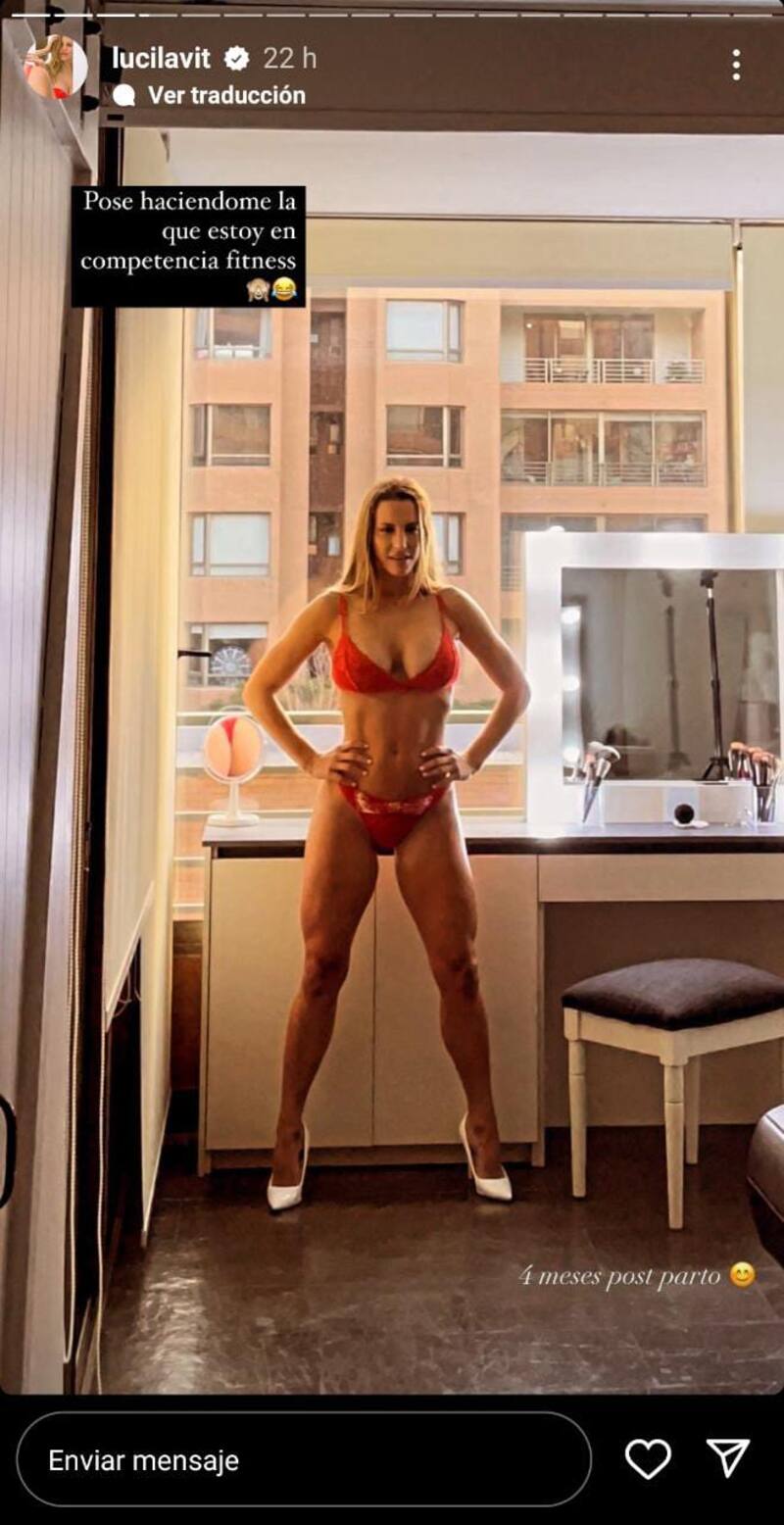 “Pose haciéndome la que estoy en competencia fitness”, detalló junto a emojis de risa mientras posó en tacones y lencería roja luciendo sus marcadas curvas. “4 meses post parto”, detalló sorprendiendo con el registro.