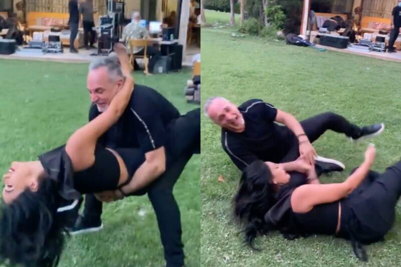 En el registro que subió Lucho en su cuenta de Instagram se ve a ambos practicando algunos pasos de baile que casi resulta, pero la Fiera y el músico terminaron en el suelo muertos de la risa, posts Luis comentó "Nos sacamos la cresta jajajajajajaj @pamefieradiaz".