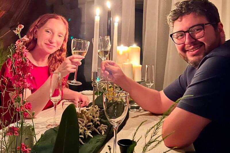 De acuerdo a lo que se puede ver en las imágenes, la pareja disfrutó un agradable momento en una velada con luz baja, velas, y que tuvo hasta una violinista personal.
