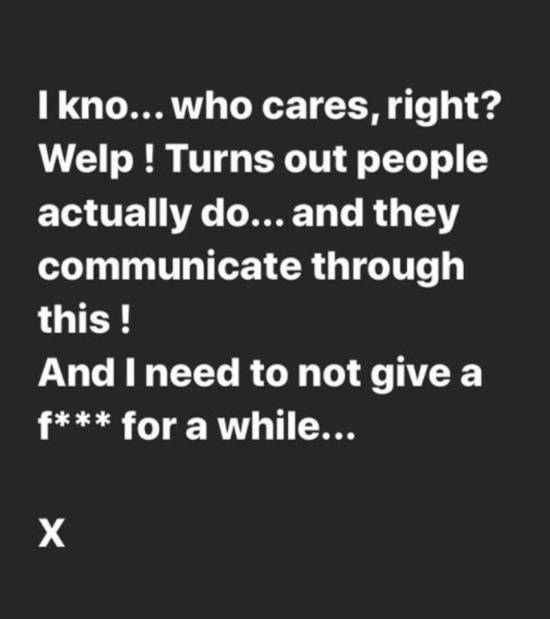 En una segunda historia, Pascal argumentó, de nuevo en inglés: "Yo sé… A quién le importa, ¿verdad? ¡Bien! Resulta que la gente realmente lo hace… Y se comunica a través de esto. Y necesito que no me importe un carajo por un tiempo".