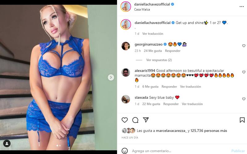 A través de su cuenta oficial de Instagram la influencer publicó unos registros donde aparece con lencería de color azul, llenándose de elogios.