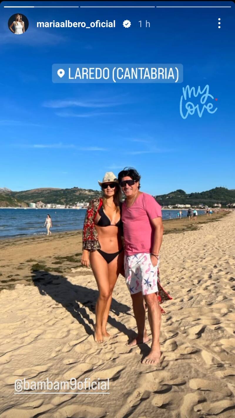 María Alberó aprovechó el momento para compartir una romántica fotografía junto al ex futbolista chileno, en las playas del país europeo.