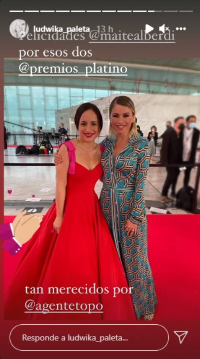 La premiación reunió a varias estrellas, entre ellas Paleta. A la actriz se le preguntó por sus favoritas entre las cintas que competían en los Platino. Y aunque hizo el punto de que respetaba la labor de todos y conocía gente en varias producciones, igual mencionó a la cinta chilena, que esta temporada compitió en los Oscar.