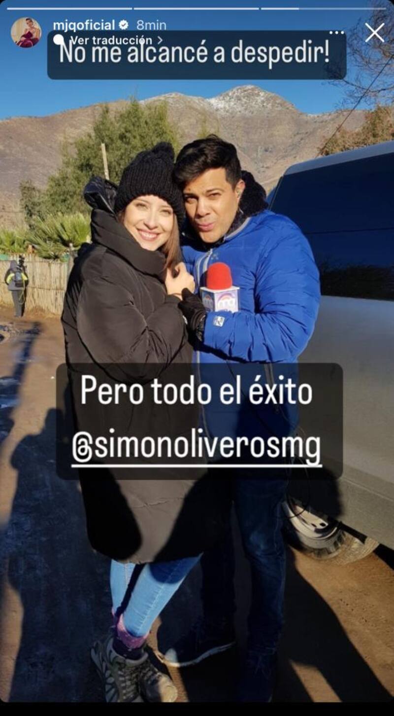 Por Rubith MoralesMaría José Quintanilla le mandó sus mejores deseos a Simón Oliveros en su nuevo desafío en TVN