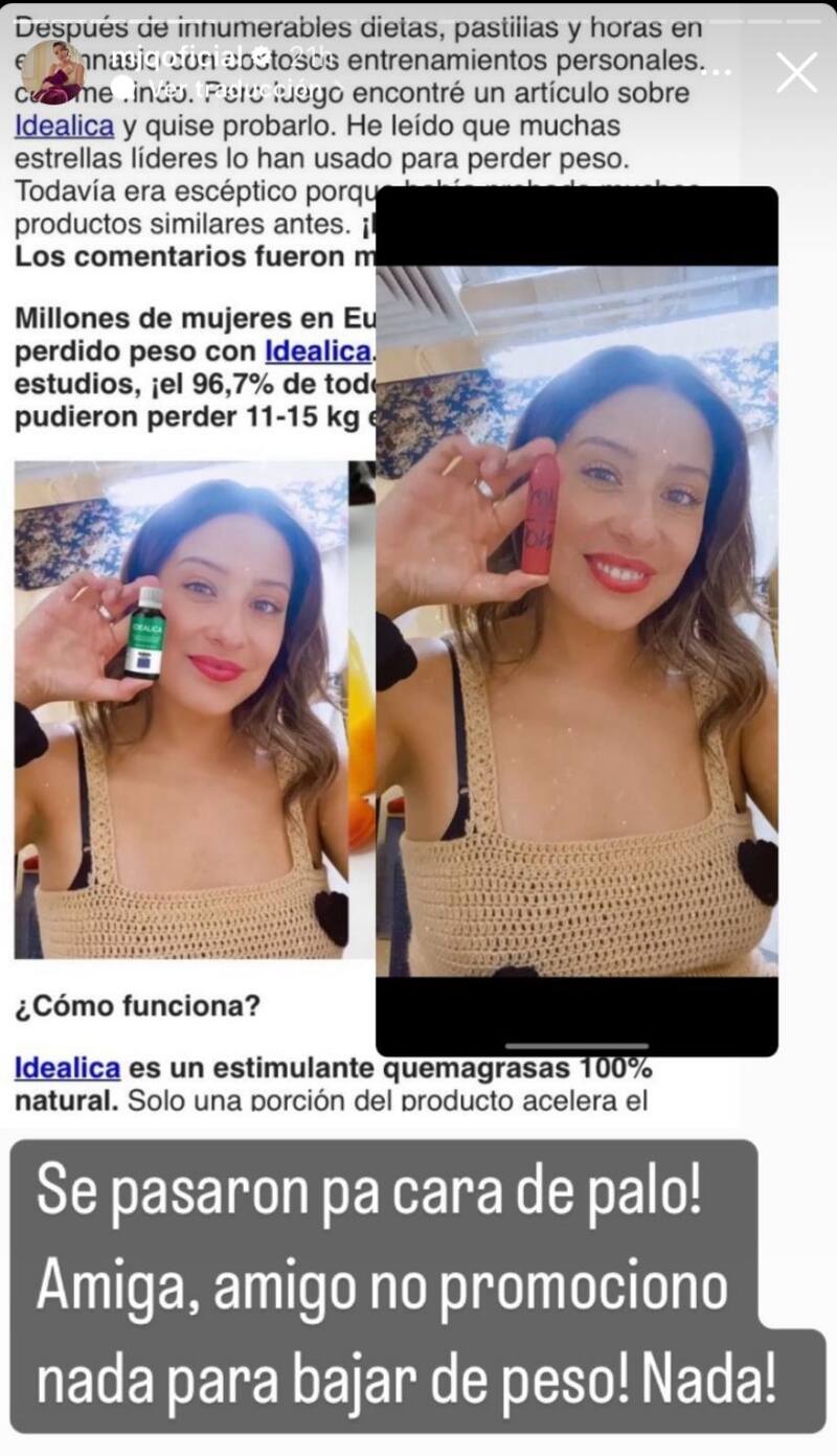 “Se pasaron pa’ cara de palo. Amiga, amigo: no promociono nada para bajar de peso”, escribió en su cuenta de Instagram.