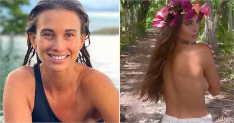 La influencer apareció de espalda a la cámara pero sin nada de ropa de la cintura para arriba, cuestión que echó a volar la imaginación de los planchas de campo.