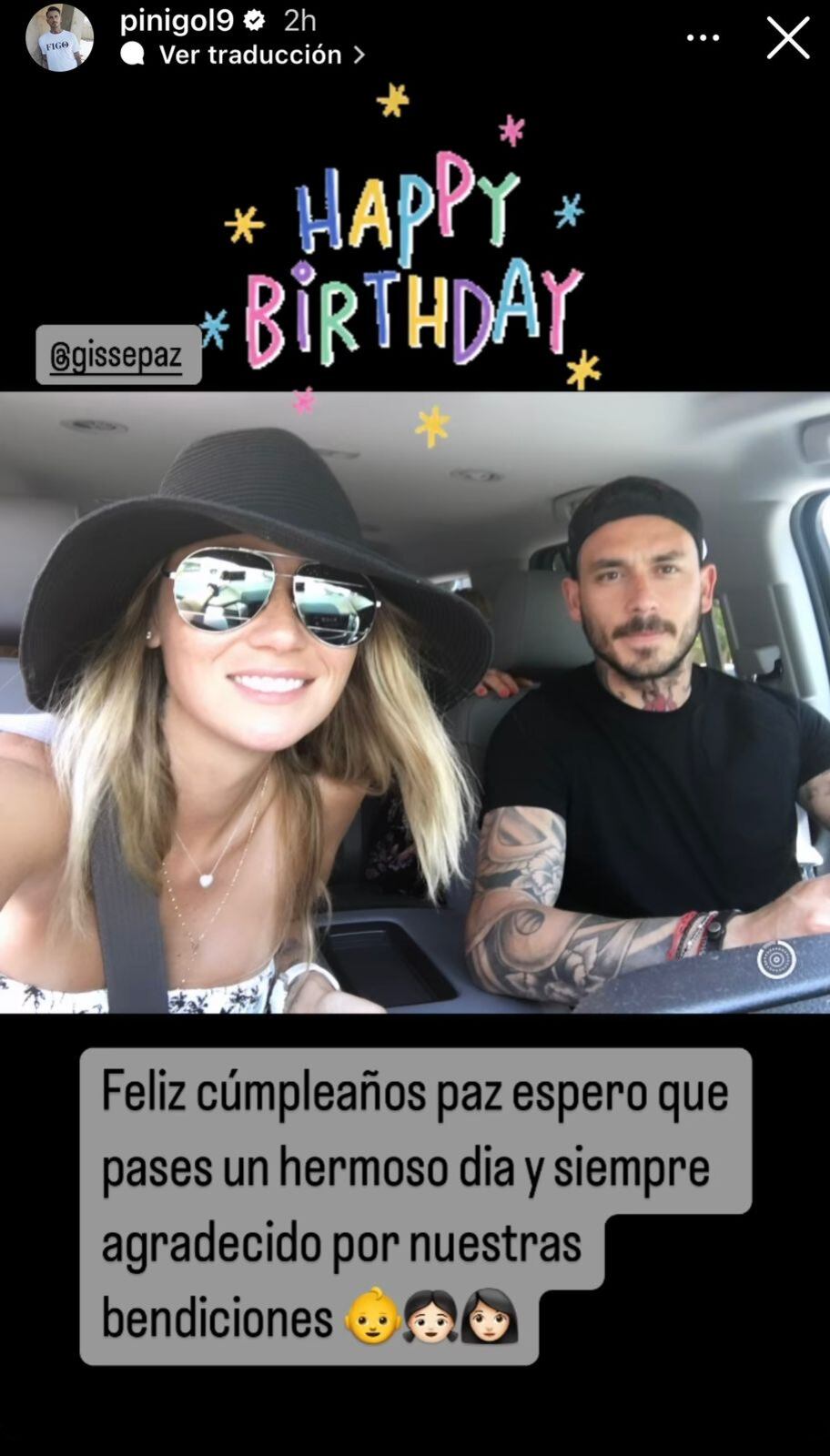 “Feliz cumpleaños Paz, espero que pases un hermoso día y siempre agradecido por nuestras bendiciones”, escribió junto a una postal donde ambos aparecen en el interior de un vehículo.