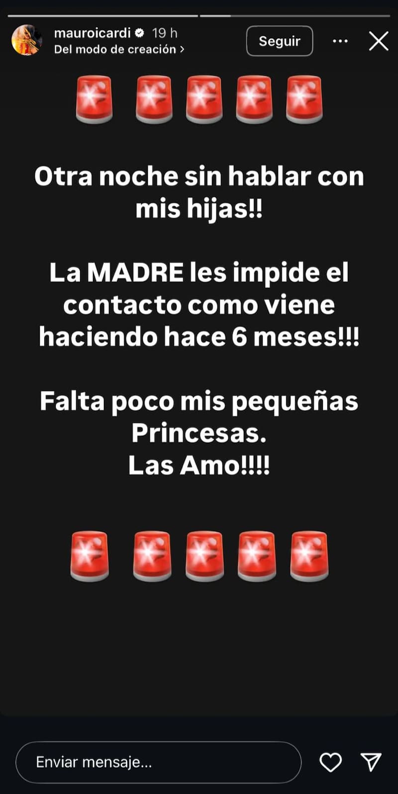 Ante esta situación, Icardi compartió una historia en su cuenta de Instagram, donde alegó: “Otra noche sin hablar con mis hijas. La madre les impide el contacto, como viene haciendo hace seis meses”, lanzó culpando a Nara.