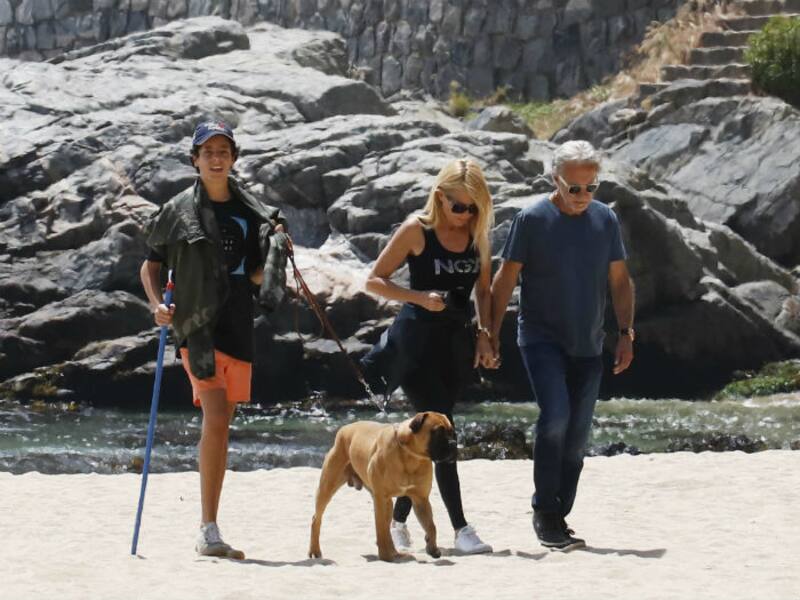 El hijo de Cecilia Bolocco y Carlos Menem fue visto caminando por la playa junto a su familia y su perro.