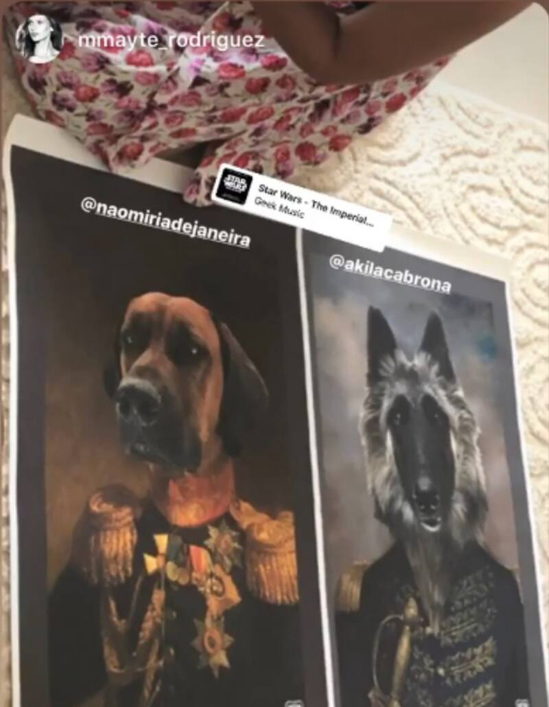 Dos cuadros personalizados de sus perras Akila y Noami, fue el obsequio de actriz a su pareja. Tras cartón, el actor reposteó la historia de Mayte: "El mejor regalo de San Valentín. Gracias", escribió el mexicano.