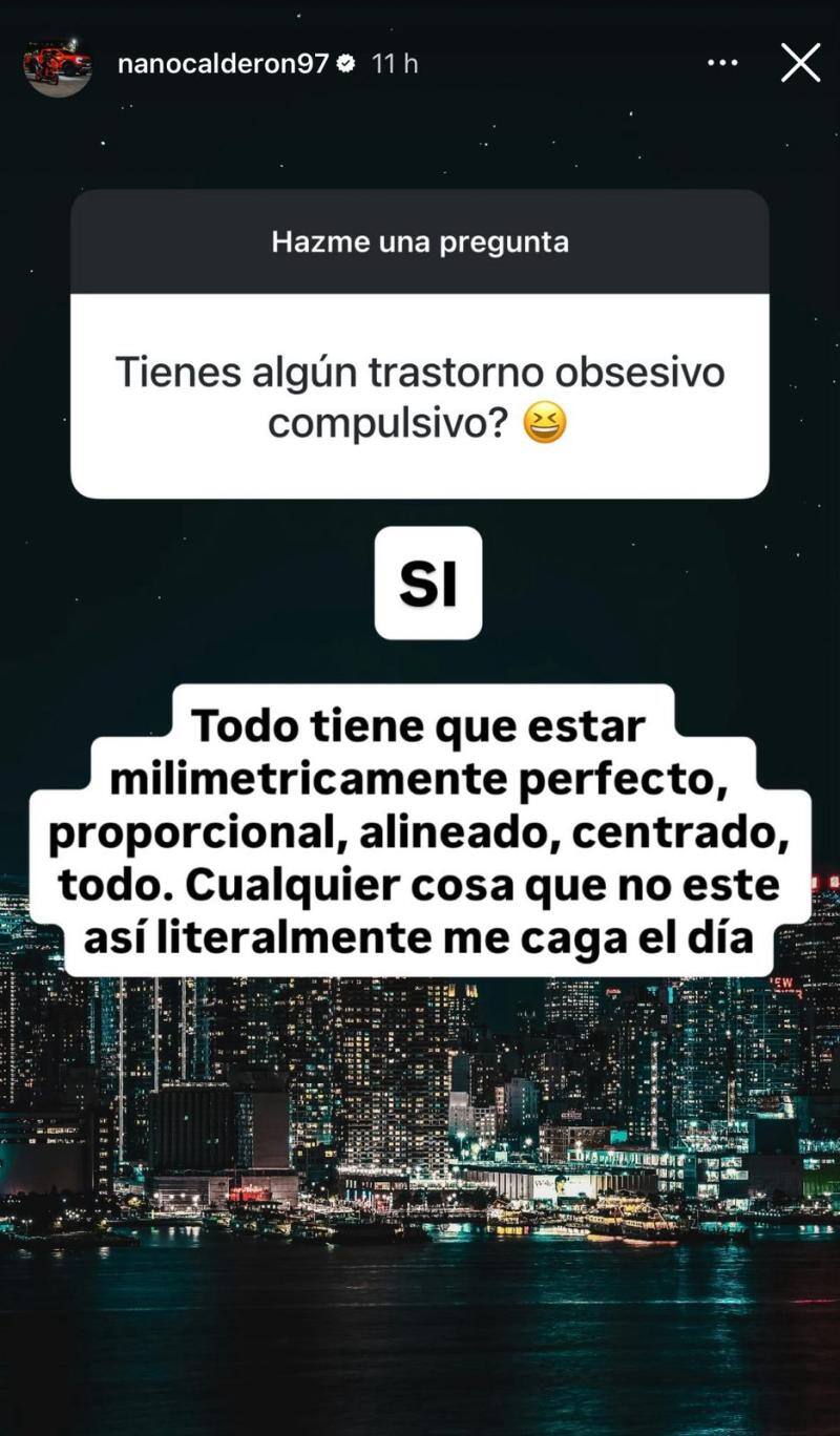 Ante esto, Nano entregó una honesta respuesta. “Sí. Todo tiene que estar milimétricamente perfecto, proporcional, alineado, centrado, todo”, confesó el influencer.