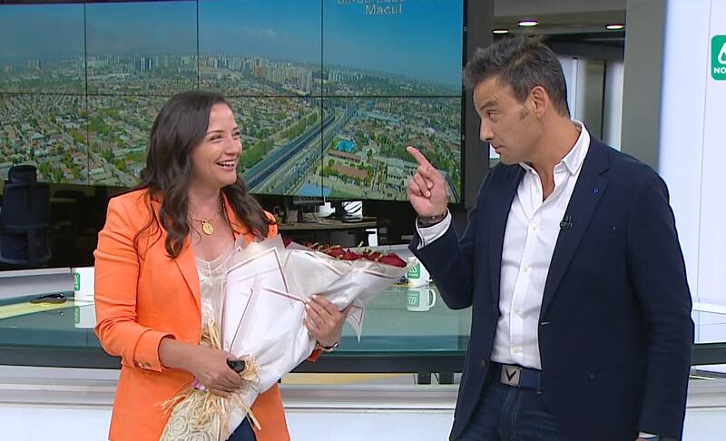 Al despedir la edición de este viernes de Meganoticias Actualiza, poco antes de las 15:00, Gonzalo Ramírez sacó un ramo de rosas y dedicó una linda despedida a su compañera.