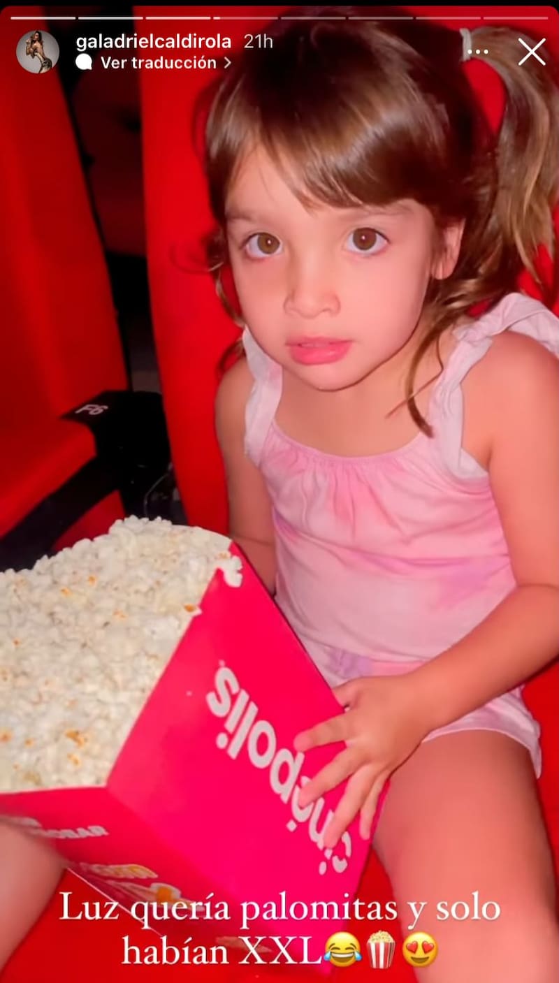 En otro de los videos compartidos por Gala Caldirola, vemos a su hija disfrutar del cine capitalino, específicamente madre e hija llegaron hasta la gran pantalla para ver la nueva entrega de “Spider Man”.
